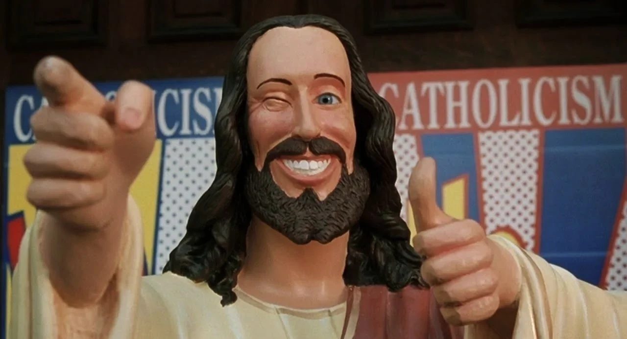 Напомним, что в центре сюжета «Догмы» оказываются падшие ангелы (Бен Аффлек и Мэтт Деймон). Увидев в пиар-акции католической церкви лазейку для возвращения на небеса, они спешат получить отпущение всех грехов. А остановить их могут лишь Джей и Молчаливый Боб — при помощи последней из рода Иисуса, тринадцатого апостола и музы-стриптизёрши.