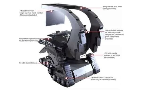 Компания Cluvens представила компьютерное кресло в необычном исполнении — в виде «боевой станции» на гусеничном ходу – Архив статей