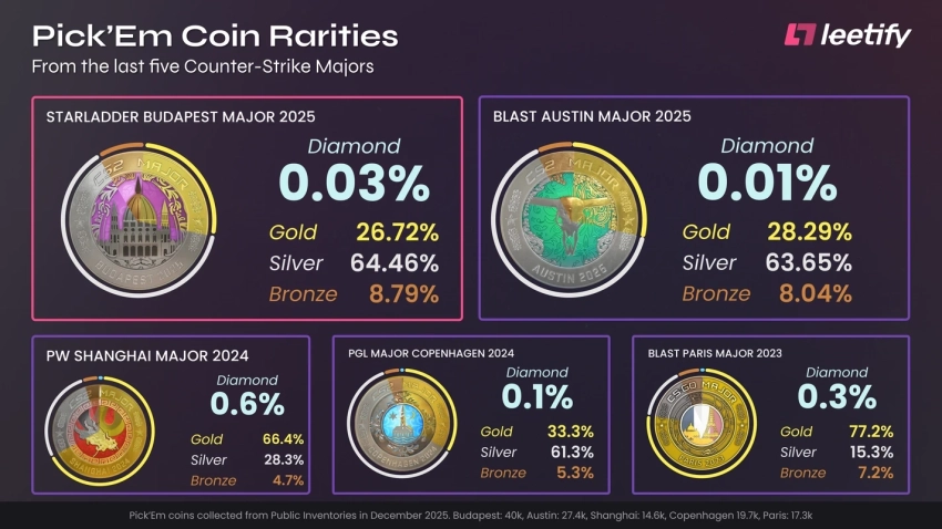 Несмотря на низкий процент, получить высшую награду в Будапеште было чуть проще, чем на предыдущем чемпионате мира. На американском BLAST.tv Austin Major 2025 бриллиантовой монетой могли похвастаться лишь 0,01% прогнозистов.