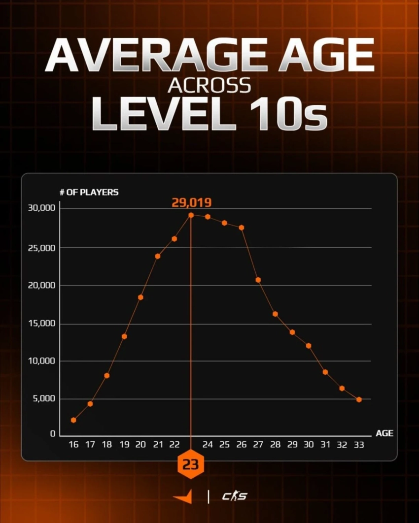 «Количество десятых уровней стабильно растёт и достигает пика к 23 годам, а после 27 лет начинает снижаться — когда у игроков появляются новые жизненные приоритеты».