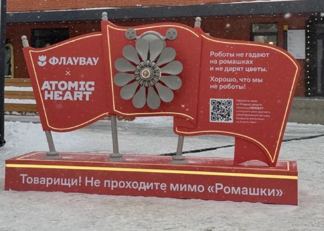 6 фотоА ещё коллаборация Atomic Heart и «Флаувау» сопровождается арт-объектом «Ромашка», который установили на «Хлебозаводе» в Москве. Поклонники шутера должны сразу вспомнить камеры, которые засекают главного героя и натравливают на него суровых роботов. Однако воплощение «Ромашки» в реальном мире символизирует любовь и заботу.