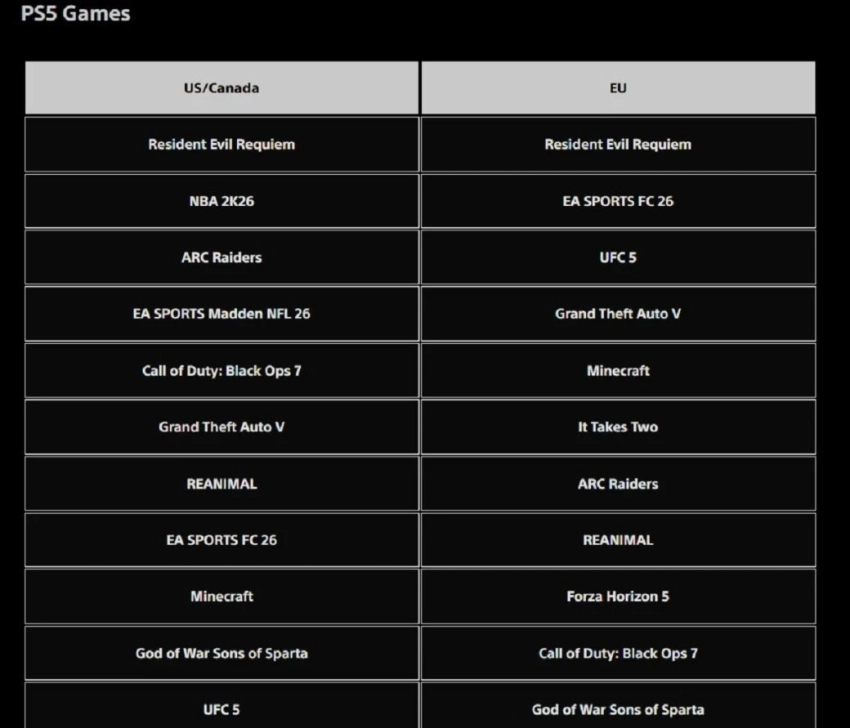 Если возвращаться к лидерам, то вторые места заняли спортивные симуляторы NBA 2K26 в США с Канадой и EA Sports FC 26 в Европе. Тройку лидеров закрыли ARC Raiders и UFC 5 соответственно. Также в первой двадцатке отметилось несколько февральских новинок.