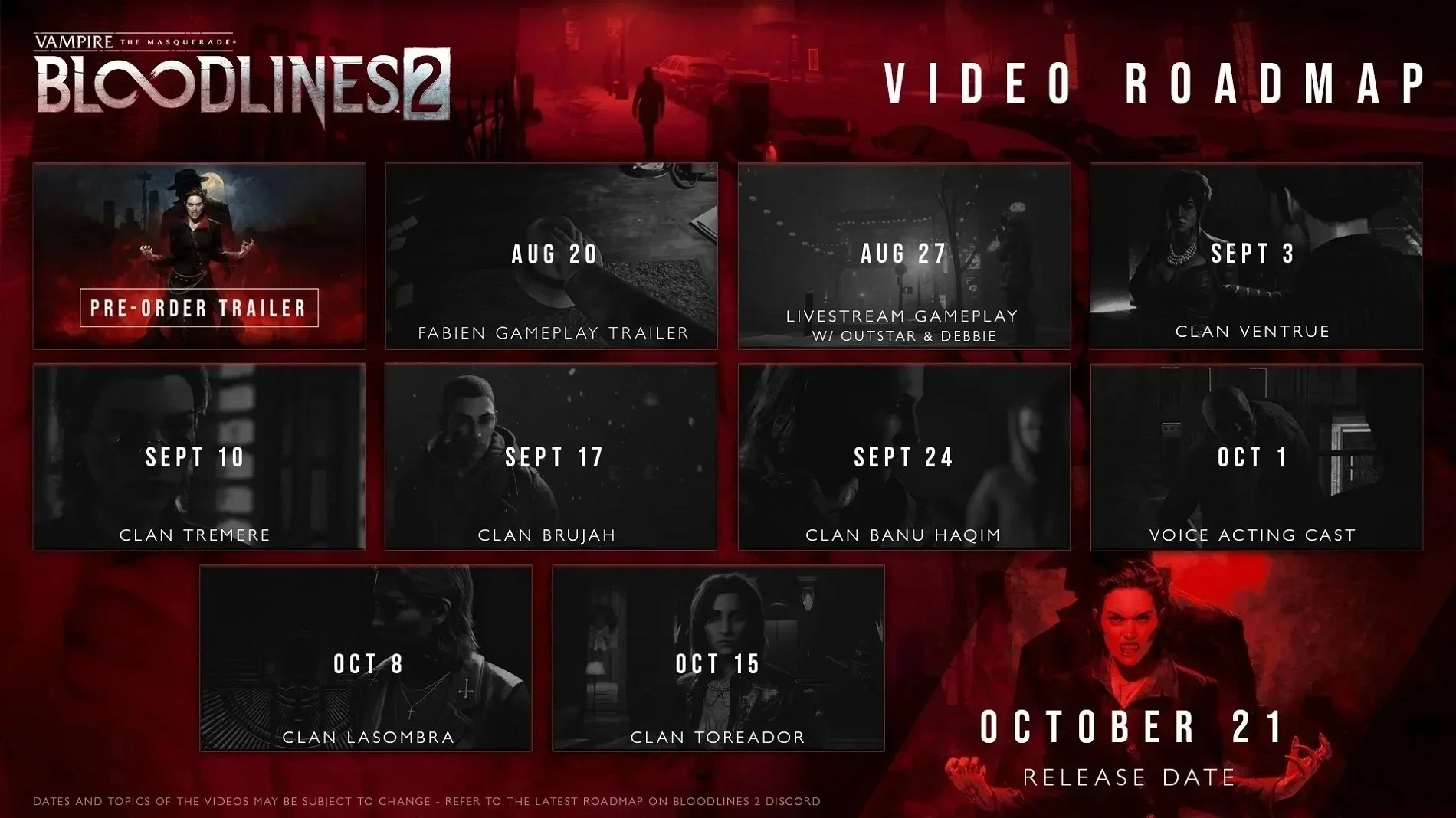 С этого месяца начали выходить ролики, посвящённые каждому вампирскому клану. Уже показали Вентру и Тремер, а 17 сентября нас ждёт Бруха.