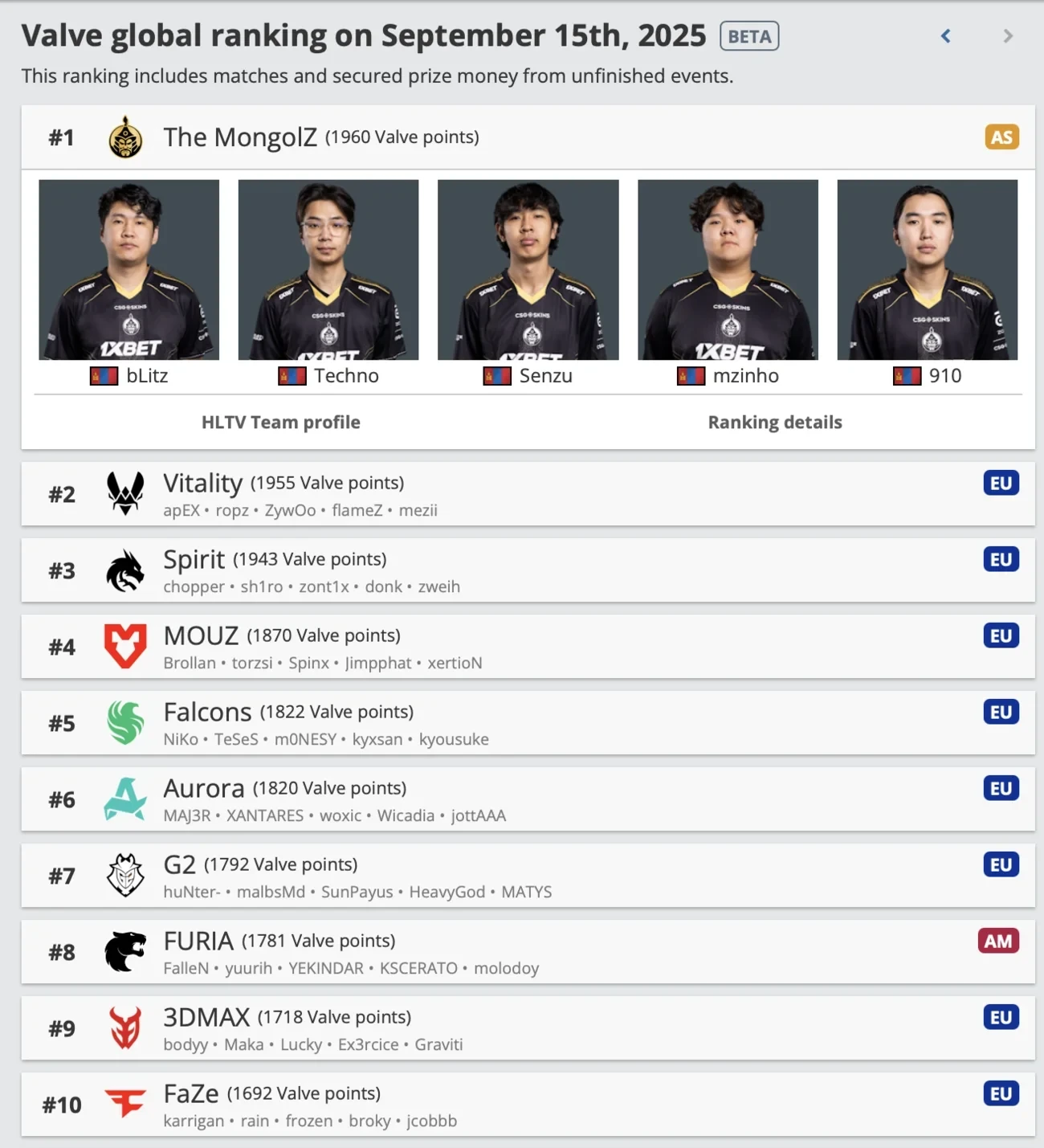 Напомним, в августе The Mongolz выиграла Esports World Cup по CS2 — этот успех и текущие результаты на старте осени закрепили их статус лидера сезона.